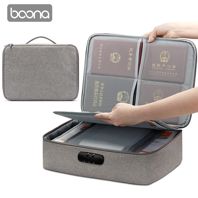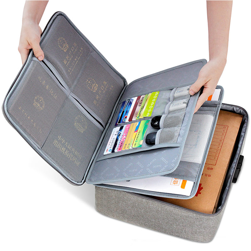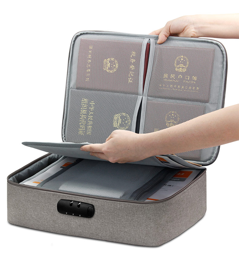 C three-layer flip document storage bag - password lock