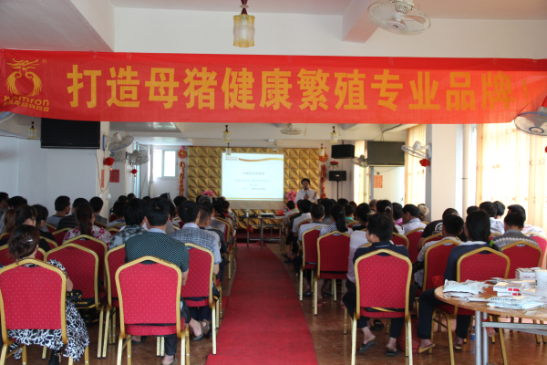 2014年5月27日,公司在福建白沙召開技術推廣會議,會議在公司技術部蘭菊英的主持下拉開了序幕。緊接著公司技術部的郭金權老師針對于“母豬的飼養管理”進行了詳細的解說,會議現場客商們受益良多,會后的訂單環節更是火爆異常。面對當前嚴峻的市場環境,奧姆龍愿與各位客戶攜手共進,共同發展!