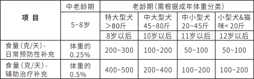 【適用范圍】犬貓老齡問題(包括神經系統、骨骼系統、心臟、肝臟等器官功能退化)的預防與康復。【用法用量】(內附餐勺,一勺約5克。)